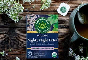 If you’re looking for a natural, caffeine-free way to unwind at night, Traditional Medicinals Nighty Night Extra Tea with valerian root is a powerful herbal blend that helps promote deep, restful sleep — perfect for your bedtime routine.